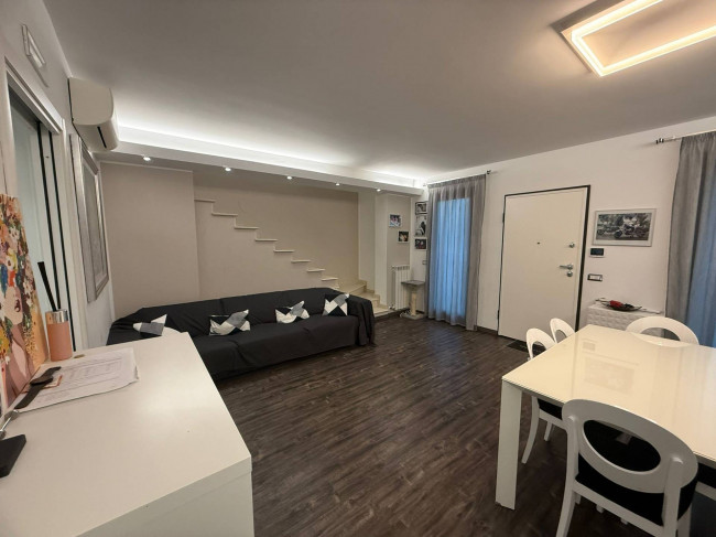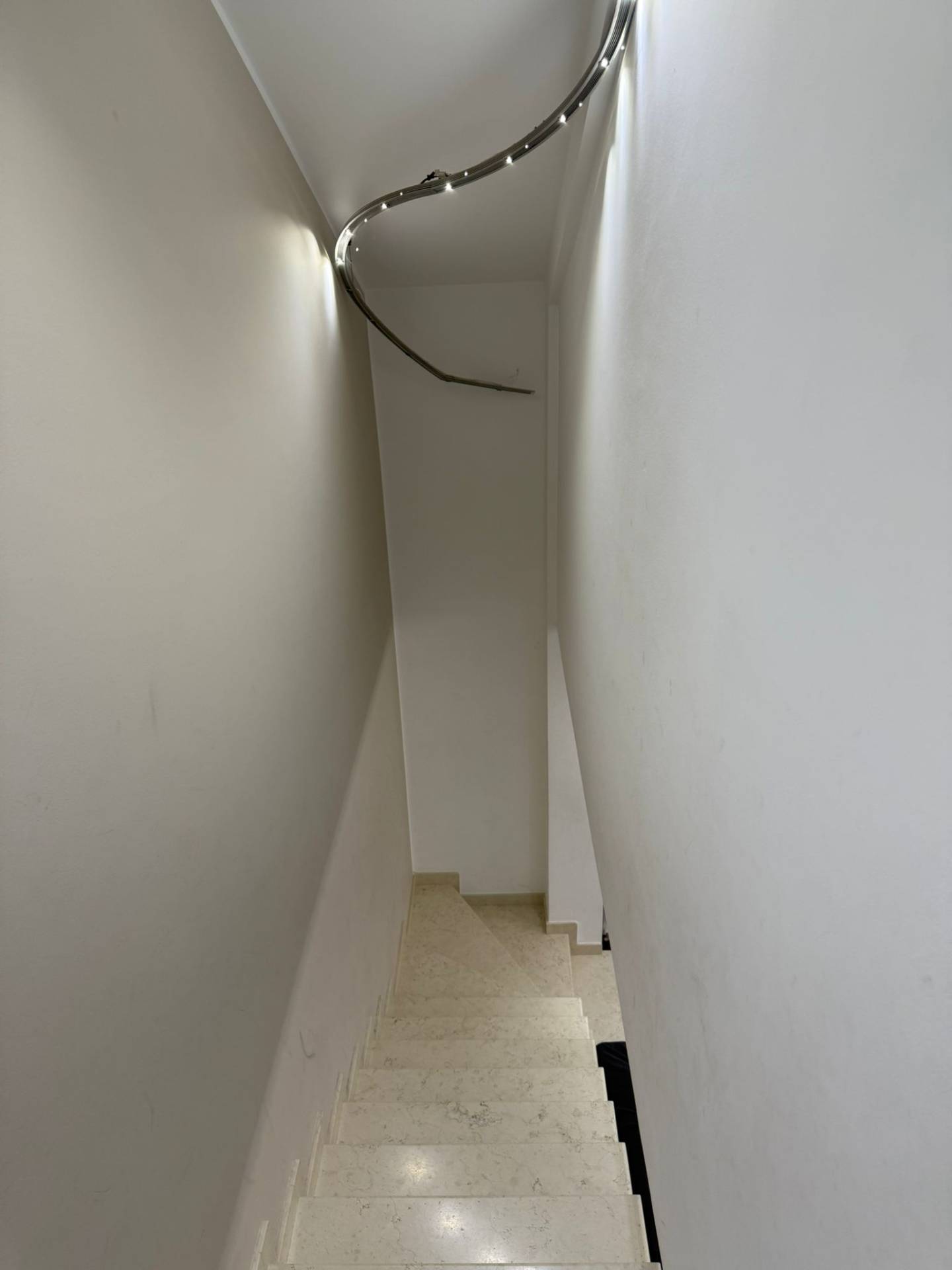 Al primo livello troviamo un ampio soggiorno/pranzo, una cucina semiabitabile, un piccolo disimpegno con armadi su misura, uno studio/camera da letto e un bagno; al piano superiore troviamo una camera matrimoniale con cabina armadio, una camera doppia, un grande bagno e una lavanderia. Oltre lo spazio sottotetto accessibile da una scala retrattile.