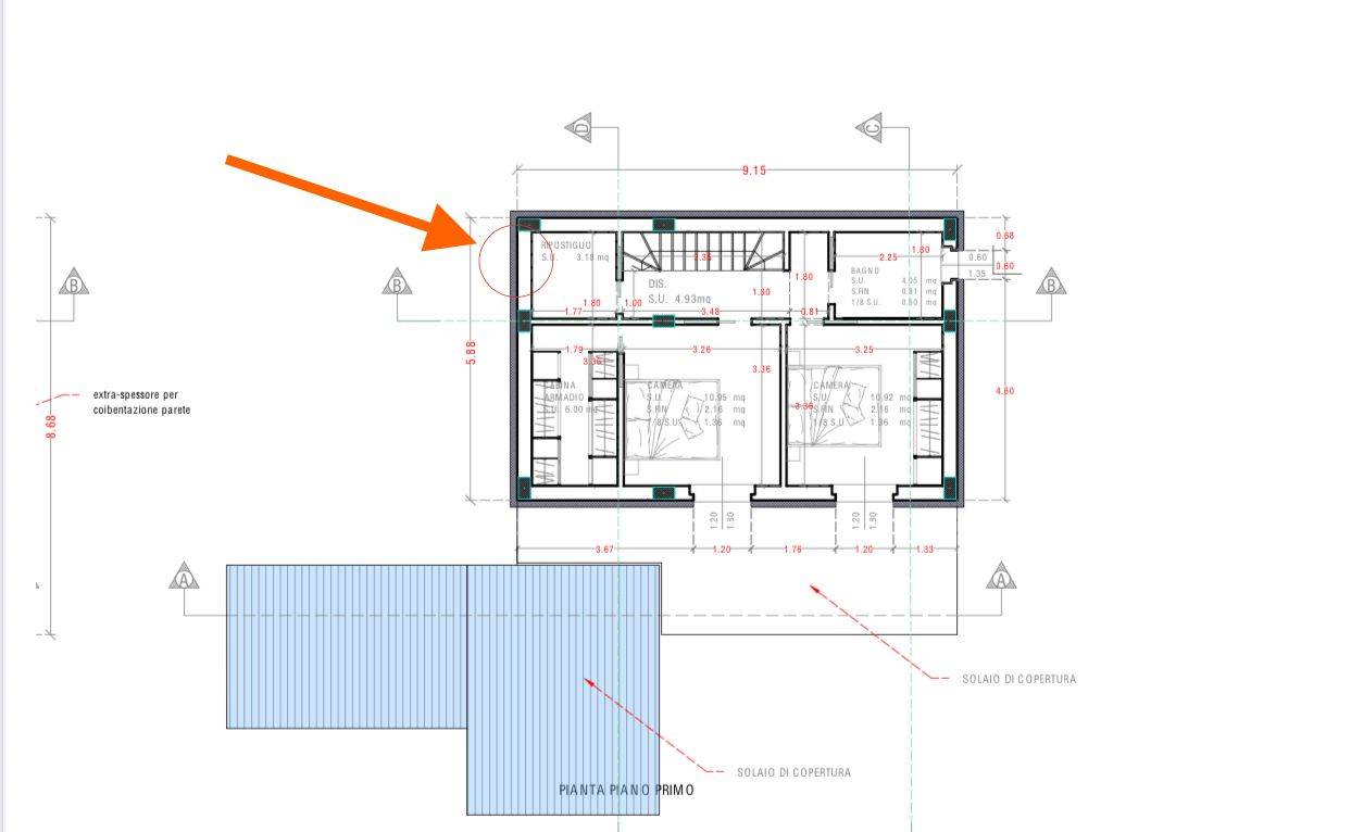 Salendo al piano superiore, si accede al reparto notte che accoglie due camere da letto, una dotata di cabina armadio, un bagno di servizio e un ripostiglio o secondo bagno. La zona notte gode dell'affaccio diretto al grande terrazzo panoramico. Questo livello infatti offre una vista panoramica sulla zona circostante, sul mare e sulla città.