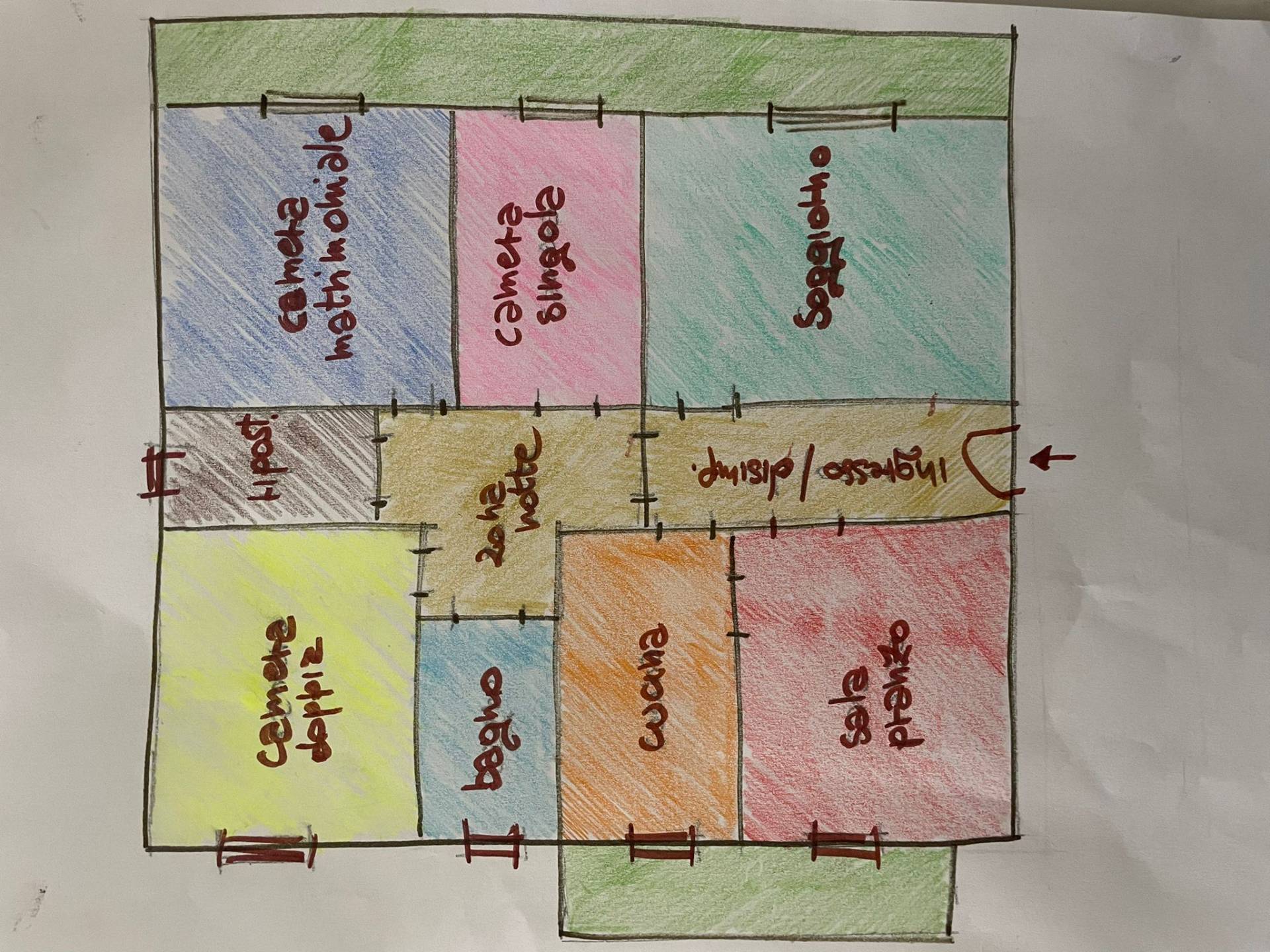 L'immobile è composto da un ingresso con sala-pranzo e cucinotto con ripostiglio/dispensa e, un soggiorno con affaccio diretto al balcone, nella zona notte troviamo tre camere da letto (matrimoniale, doppia e singola) e due bagni di cui uno con vasca e uno spazioso e comodo ripostiglio.